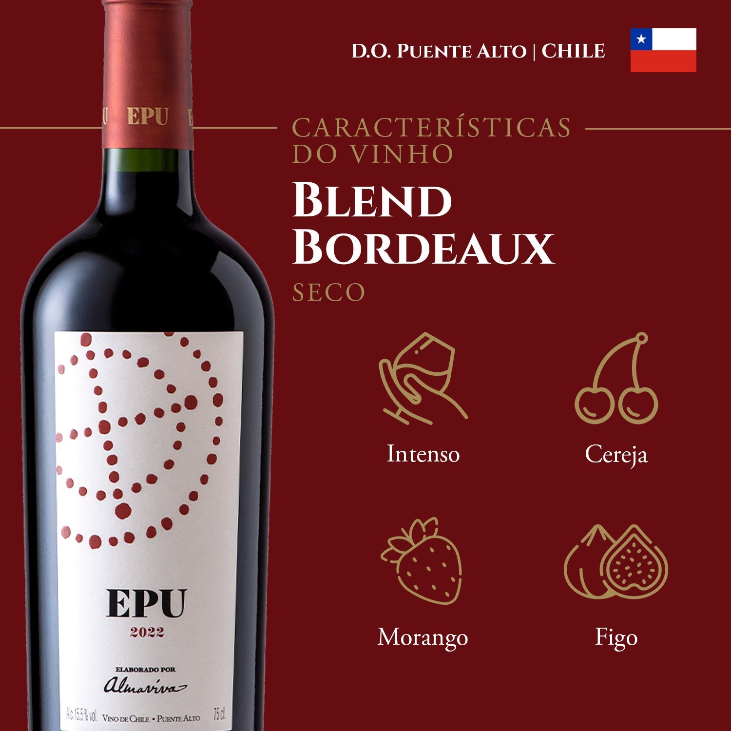 Um blend tinto com frutas vermelhas e negras, notas de azeitonas, páprica e um toque herbáceo, com taninos acessíveis